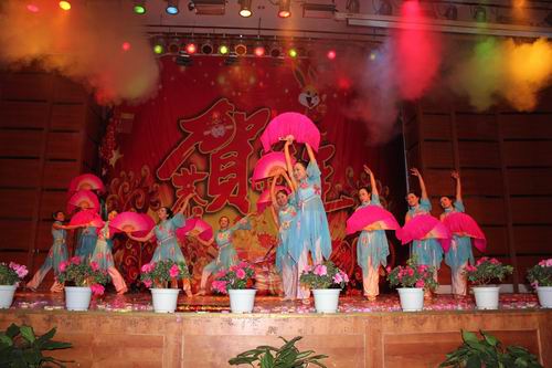 12月30日晚,我校2011年教职工元旦迎新晚会在模拟法庭火热上演。晚会以后勤分工会的歌伴舞《恭喜发财》拉开帷幕。