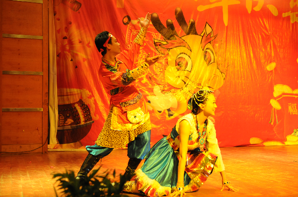12月29日,2012教职工元旦晚会在模拟法庭隆重开演,后勤分工会选送的节目藏族舞蹈《情满天路》,亮丽的服饰和明快的舞步将元旦将至的喜庆挥洒得淋漓尽致,展现了后勤人喜迎新年的欢乐场面与精神风采。
