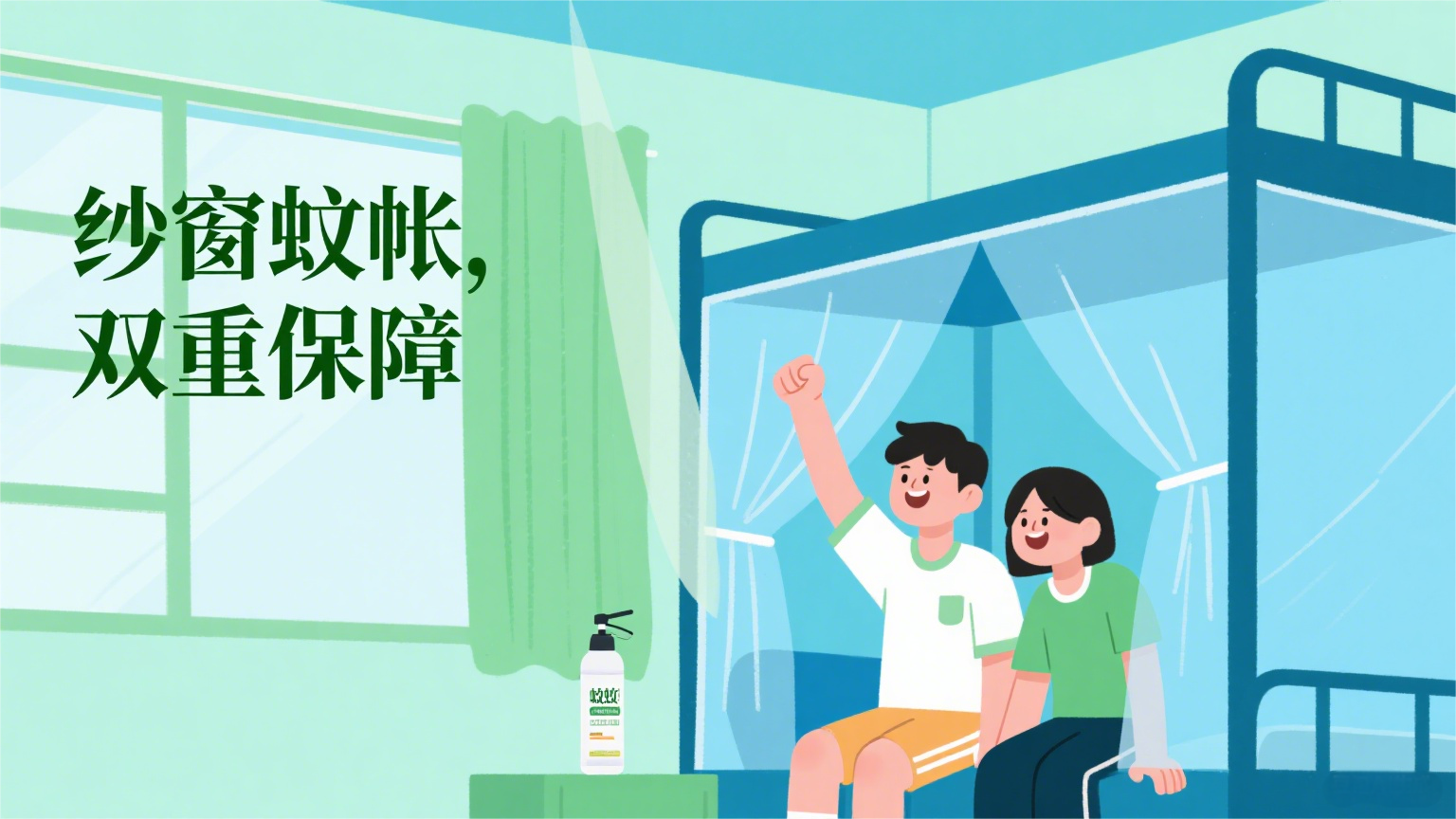 及时清理宿舍积水,夜间睡觉时(尤其是夏季开窗通风时),务必使用蚊帐(建议选择加密款,防止蚊虫钻入);避免在宿舍内使用香味浓郁的香水、护肤品(可能吸引蚊虫)。